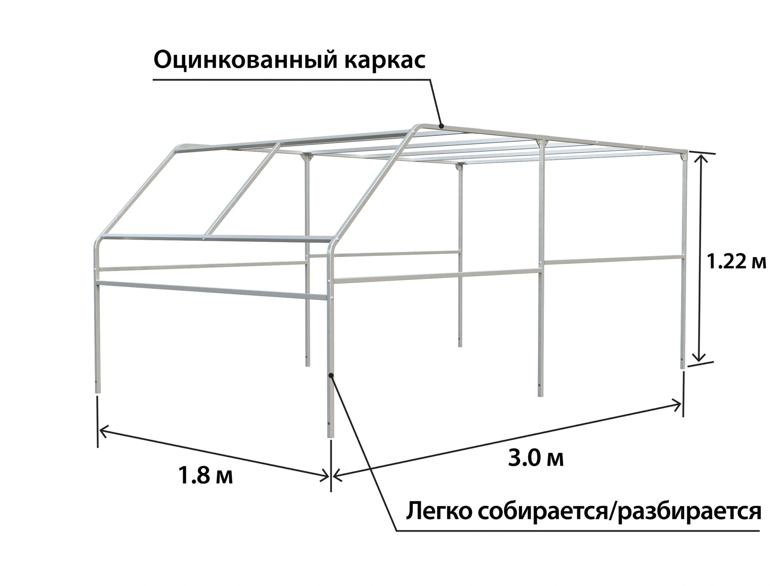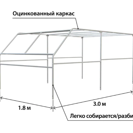 Каркас изготовлен из оцинкованного металла с использованием краб-системы для быстрой сборки. Аэродинамический скос снижает сопротивление воздуха. В комплекте имеются все необходимые крепежные элементы.