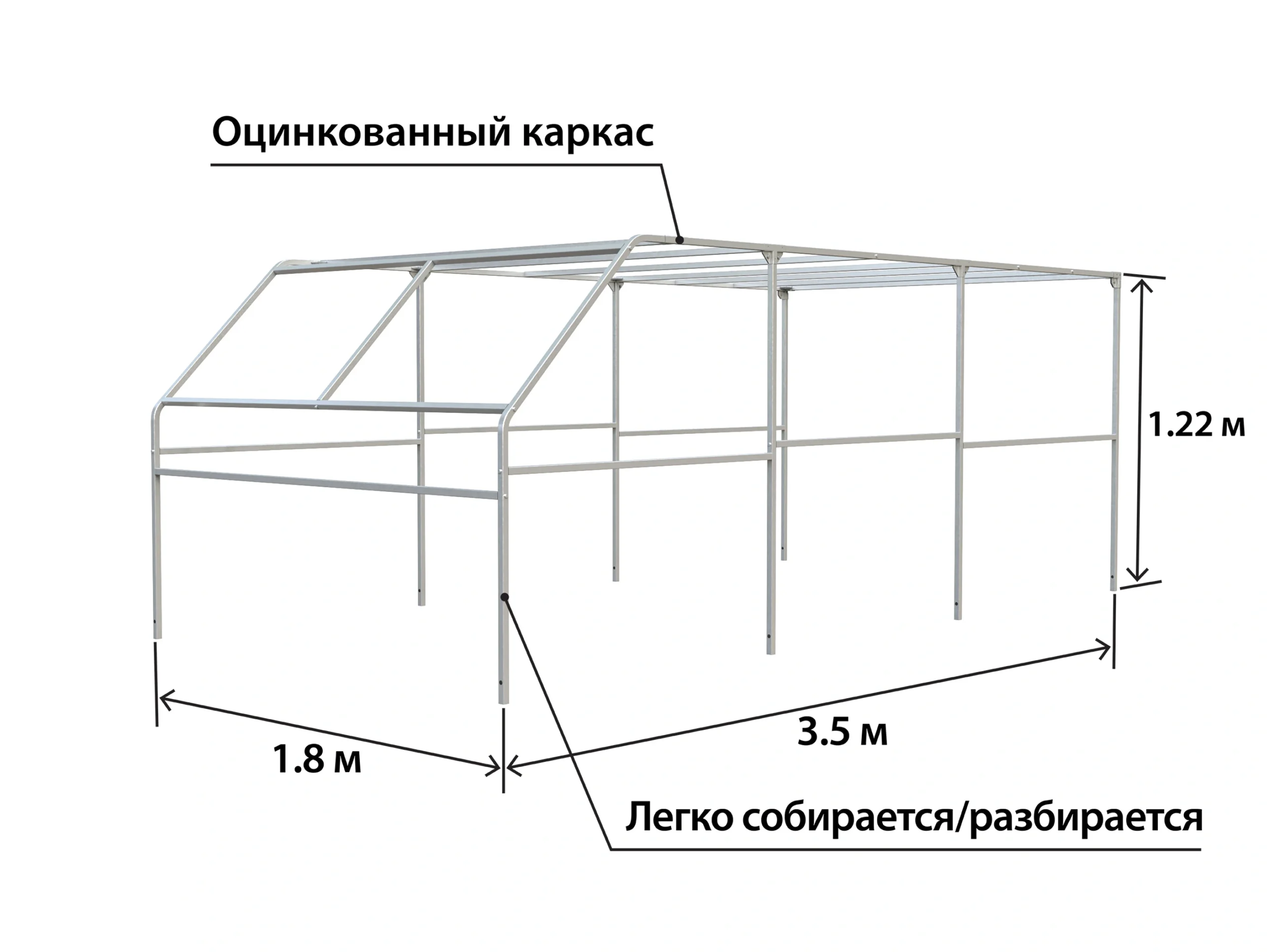 Каркас изготовлен из оцинкованного металла с использованием краб-системы для быстрой сборки. Аэродинамический скос снижает сопротивление воздуха. Совместим с бортами 300 и 500 мм. В комплекте все необходимые крепежные элементы.