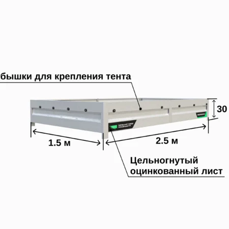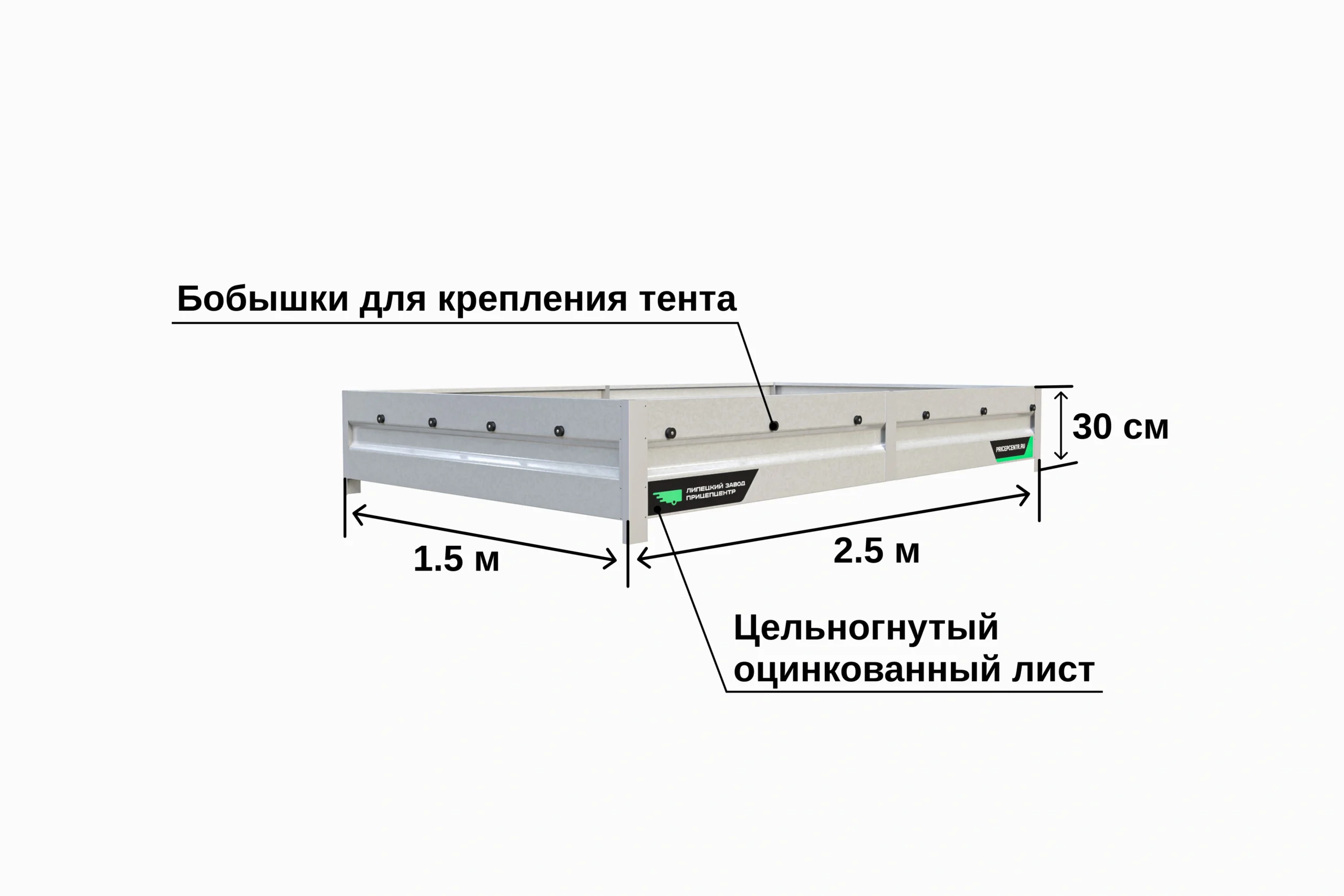 Борта изготовлены из оцинкованной стали толщиной 0,8 мм. Оснащены отверстиями для монтажа дуг тента и бобышками для натяжения тросов. Полностью готовы к установке на прицеп.