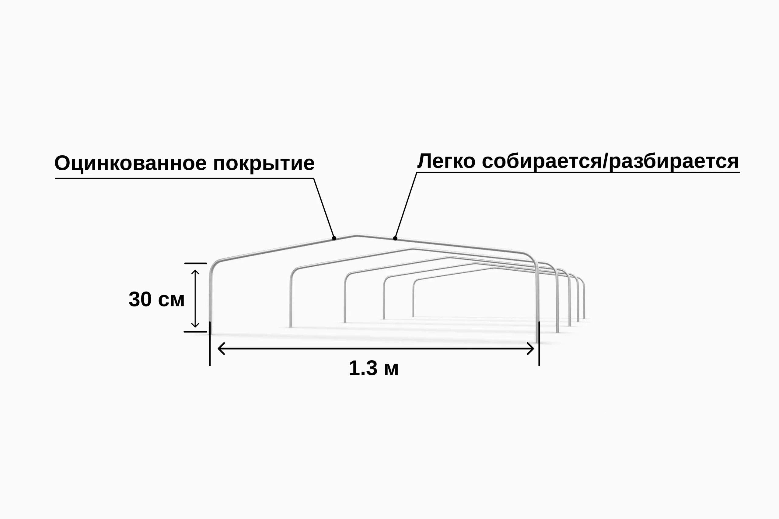 Дуги изготовлены из прочного металла с антикоррозийным покрытием. Конструкция оптимизирована для быстрой установки и снятия тента. Полная комплектация из 5 дуг обеспечивает усиленное крепление тента для прицепов увеличенной длины.