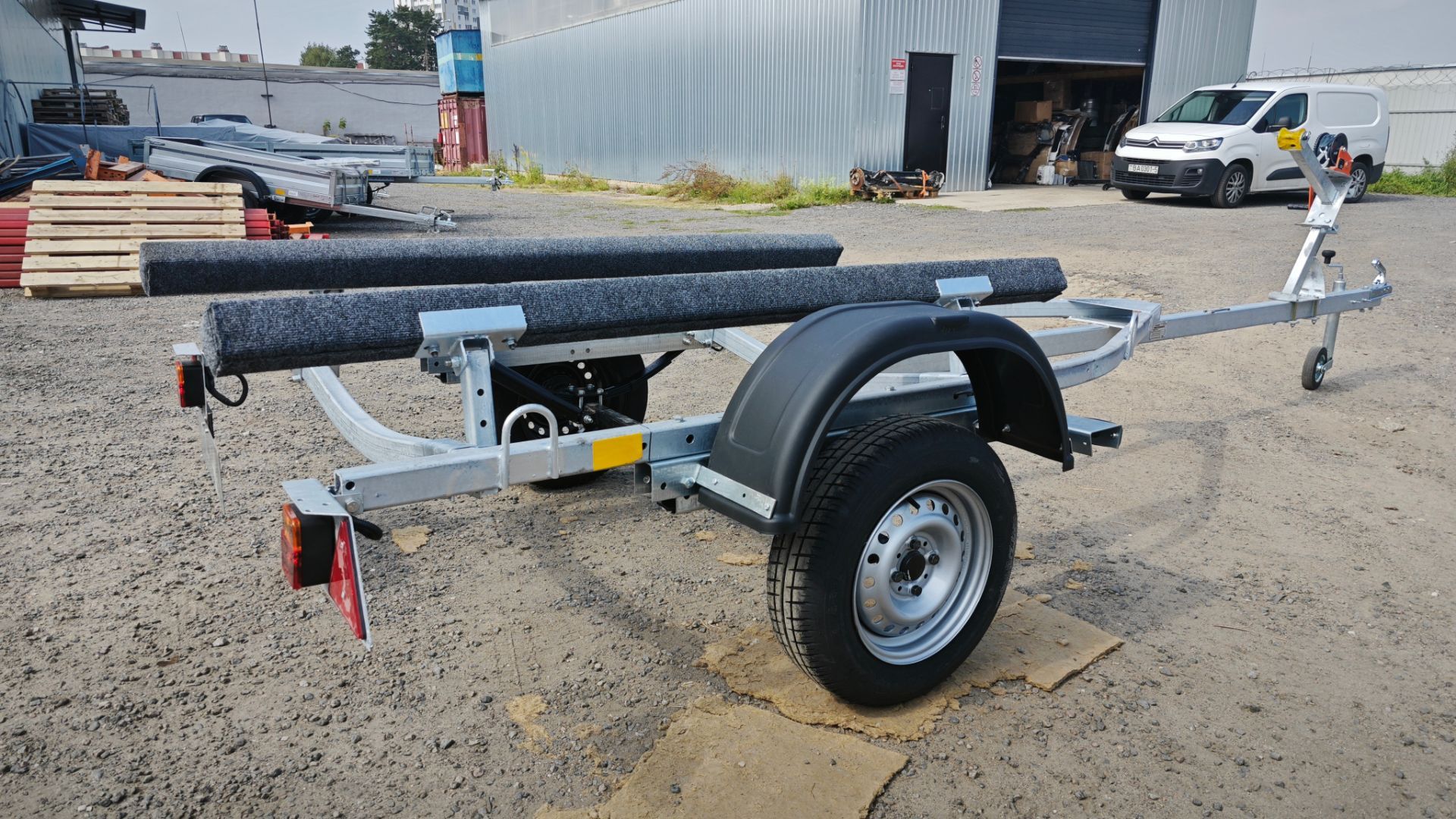 Одноосный прицеп разработан для удобной транспортировки компактных плавсредств. Полное оцинкованное покрытие и замкнутый профиль рамы обеспечивают защиту от коррозии и механических повреждений. Специально изогнутые поперечины позволяют разместить лодку с минимальной высотой, снижая центр тяжести. Рессорная подвеска с амортизаторами гарантирует плавность хода.