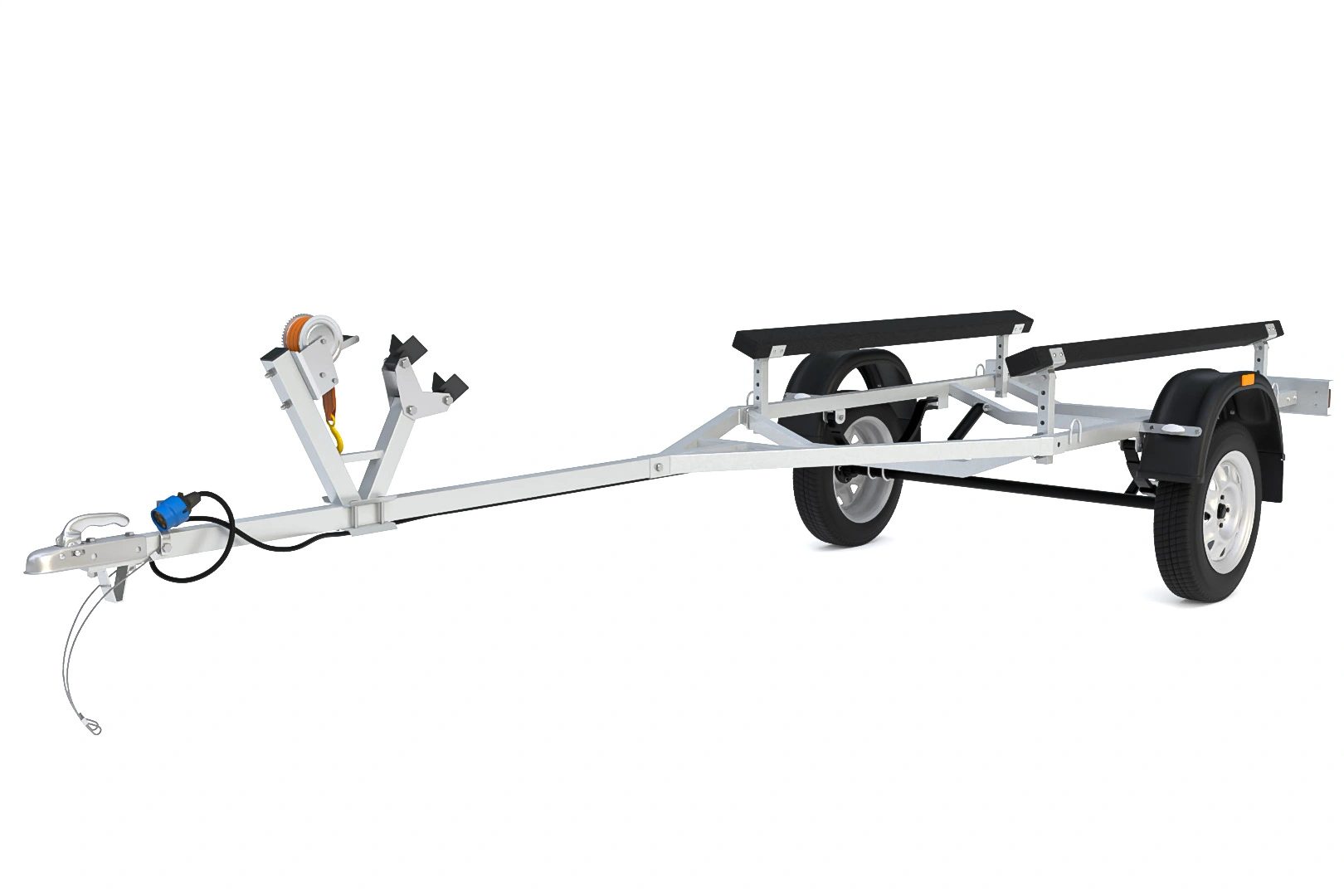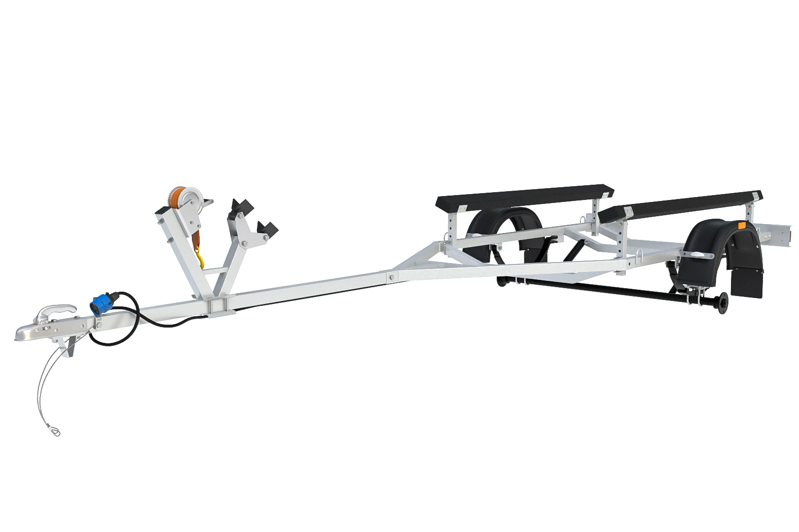 Модель разработана для безопасной транспортировки крупной водной техники. Полное оцинкованное покрытие обеспечивает защиту от коррозии, а усиленная рама и дышло гарантируют устойчивость. Удлиненные до 2 метров ложементы с ковролиновым покрытием предотвращают повреждение корпуса. Универсальная конструкция подходит как ,для плоскодонных и килевых лодок.