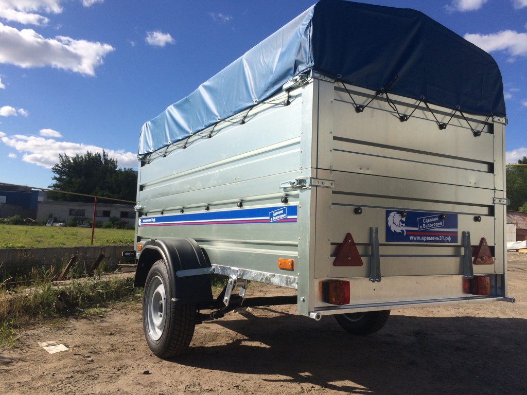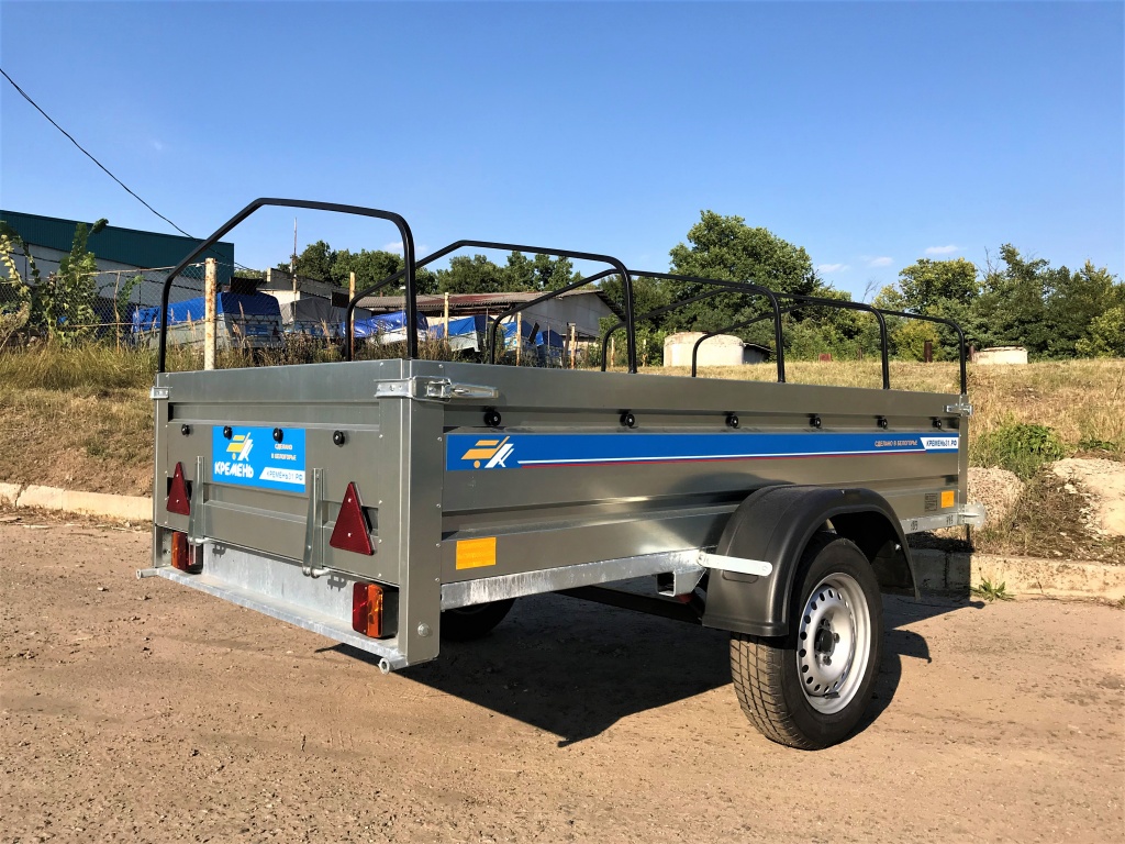 Рама прицепа выполнена из усиленного металлического профиля с применением технологии горячего цинкования, что обеспечивает защиту сварных швов и увеличивает ресурс конструкции.