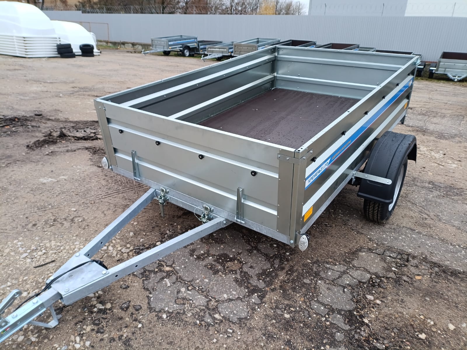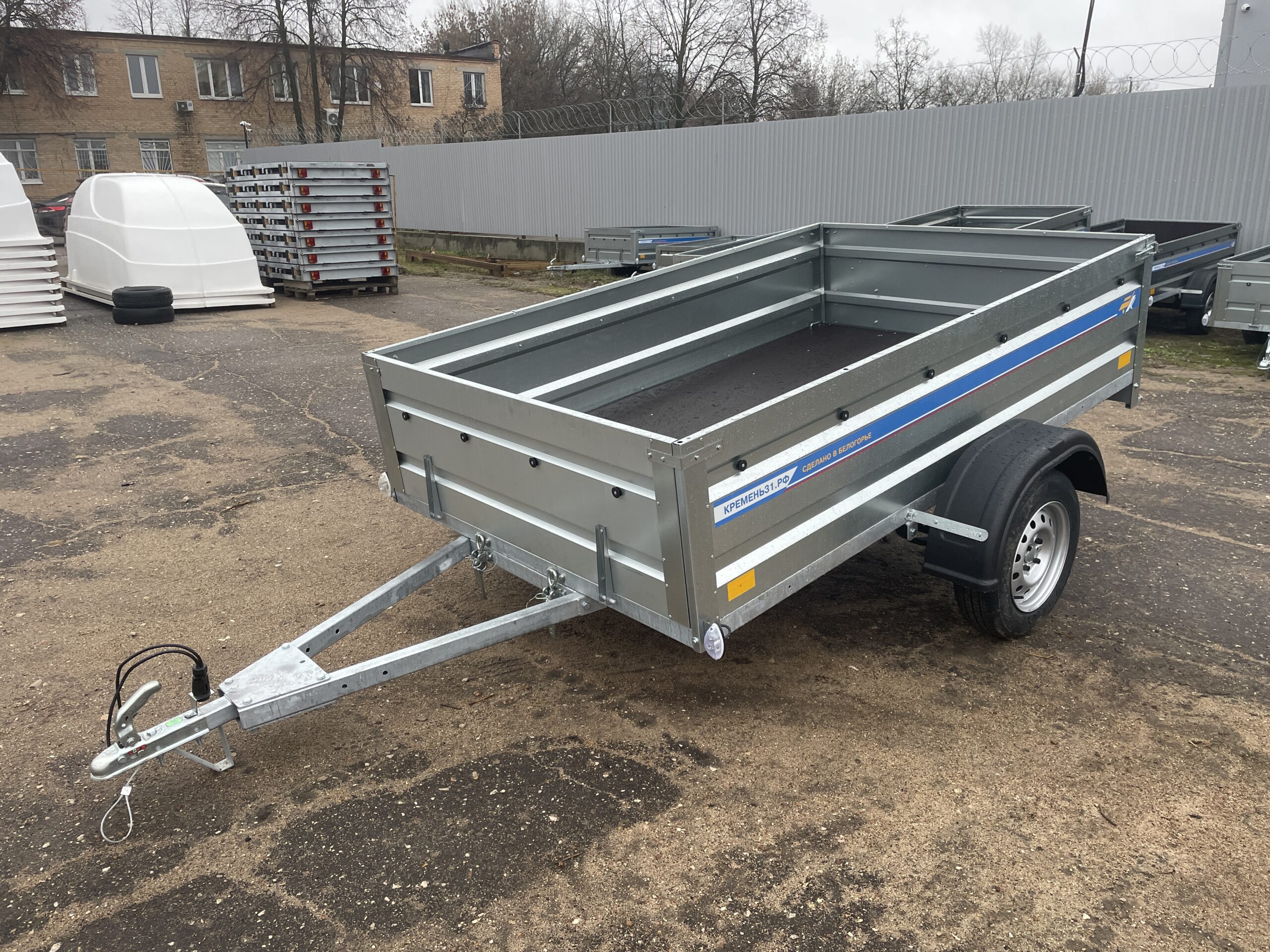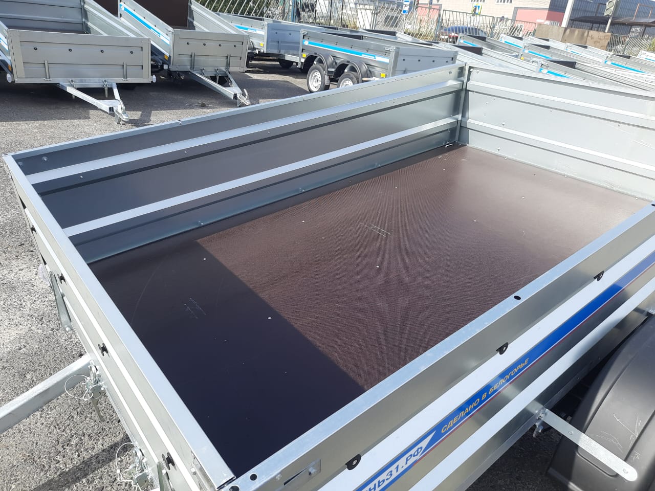 Конструкция выполнена на базе рамы 60×40 мм с горячим цинкованием, что обеспечивает антикоррозийную защиту и увеличивает срок службы при хранении и эксплуатации в любых погодных условиях. Борта из оцинкованной стали высотой 50 см имеют усиленные стойки жесткости, а влагостойкая фанера 9 мм используется в качестве пола, обеспечивая надежность при точечных и распределённых нагрузках.