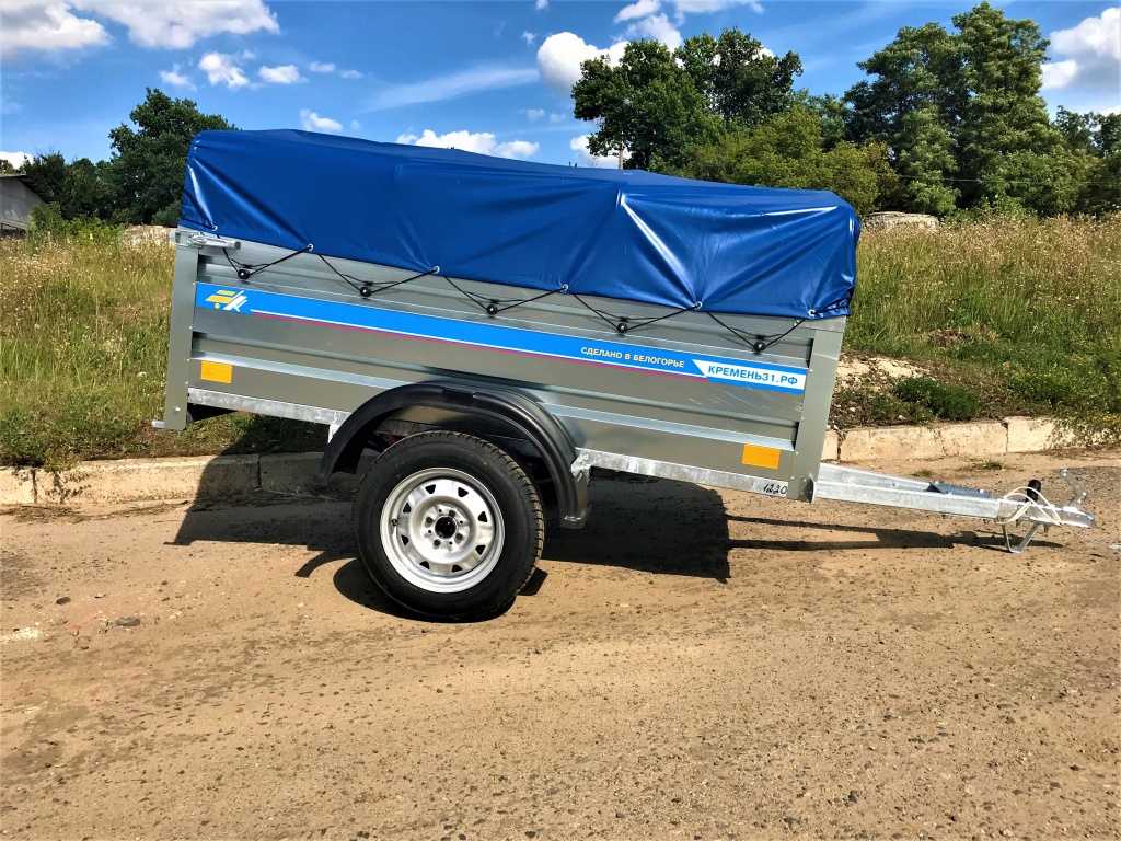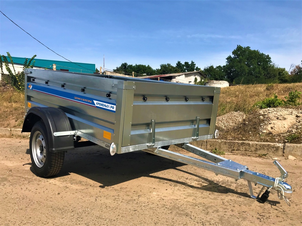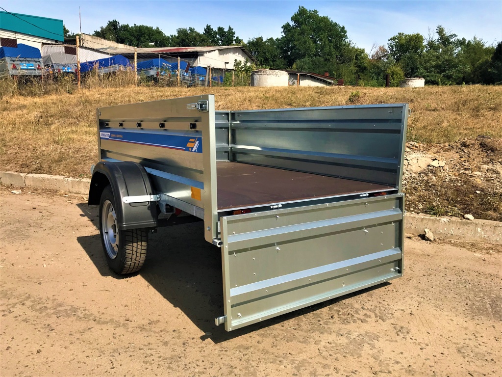 Борта прицепа оцинкованные, высотой 500 мм (50 см), изготовлены из металла толщиной 0,7 мм. Конструкция предусматривает открывающийся передний и задний борт, что упрощает погрузку длинномерных грузов и повышает удобство эксплуатации. Рама прицепа сварная, выполнена из стального профиля 60х40 мм и обработана методом горячего цинкования, что обеспечивает защиту от коррозии и увеличивает срок службы прицепа даже при интенсивной эксплуатации.